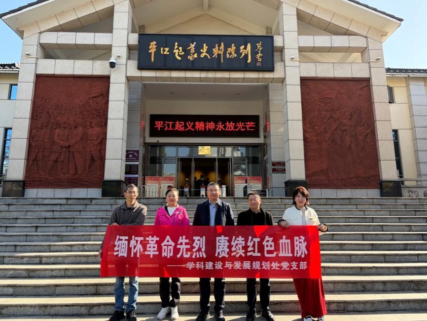 为深入学习贯彻党的二十大及二十届历次全会精神,将中央八项规定精神落到实处,11月30日,学科建设与发展规划处党支部与研究生院党支部联合组织全体党员赴岳阳平江这片红色热土,开展“一月一课一片一实践”主题党日活动,在革命历史的浸润中淬炼党性、强化担当。