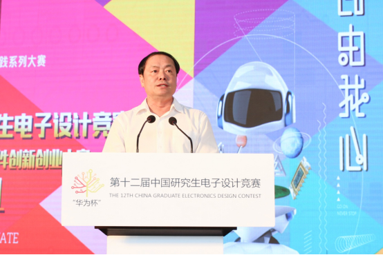 乔跃山副司长发表致辞,对大赛的举办表示热烈的祝贺,他强调研究生是电子信息领域最具创新能力和潜力的群体。培养研究生创新能力既是实施科教兴国和建设创新型国家的必然要求,也是未来我国产业发展的重要支撑。中国研究生电子设计竞赛为大家提供了宝贵的机会和平台。